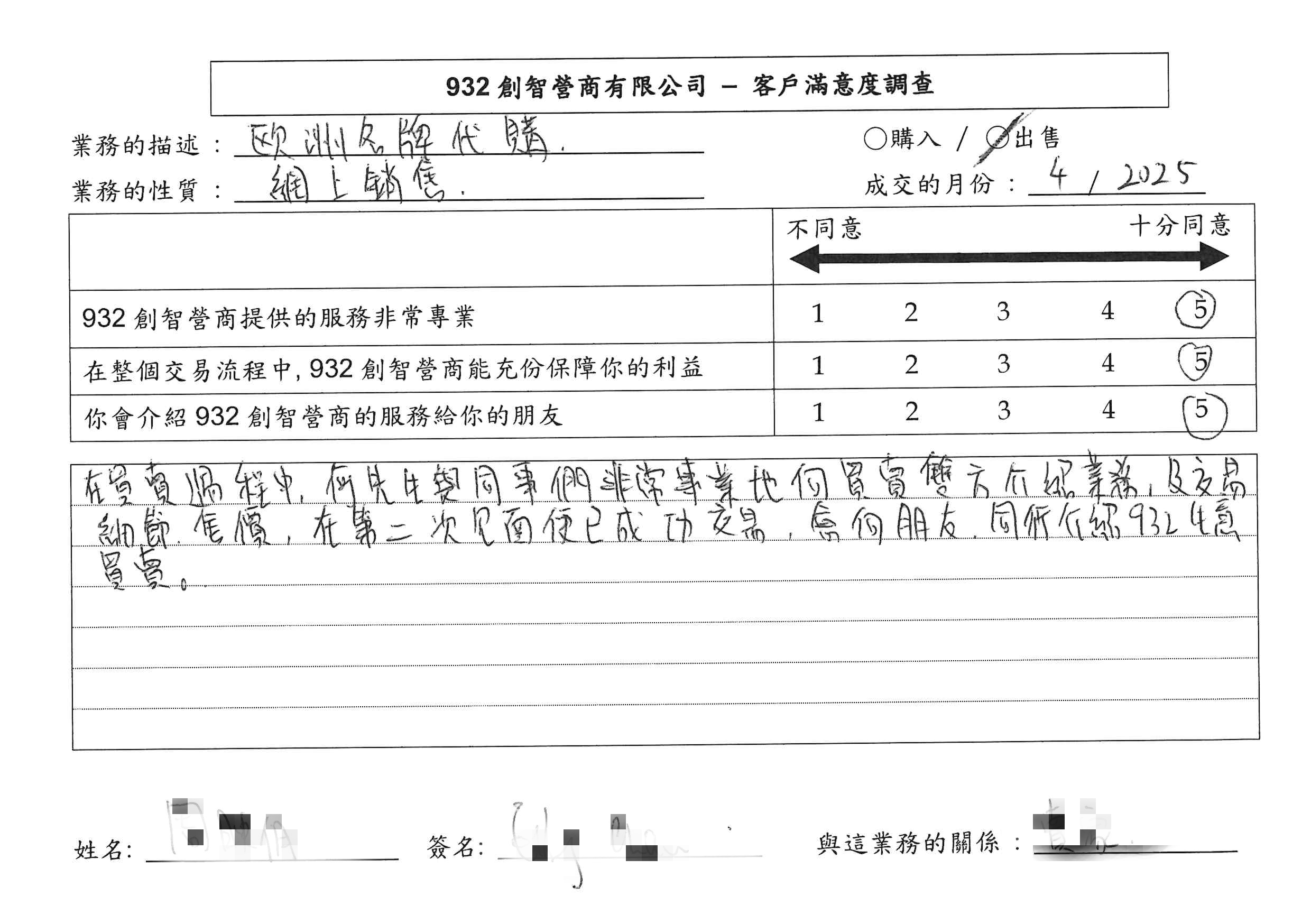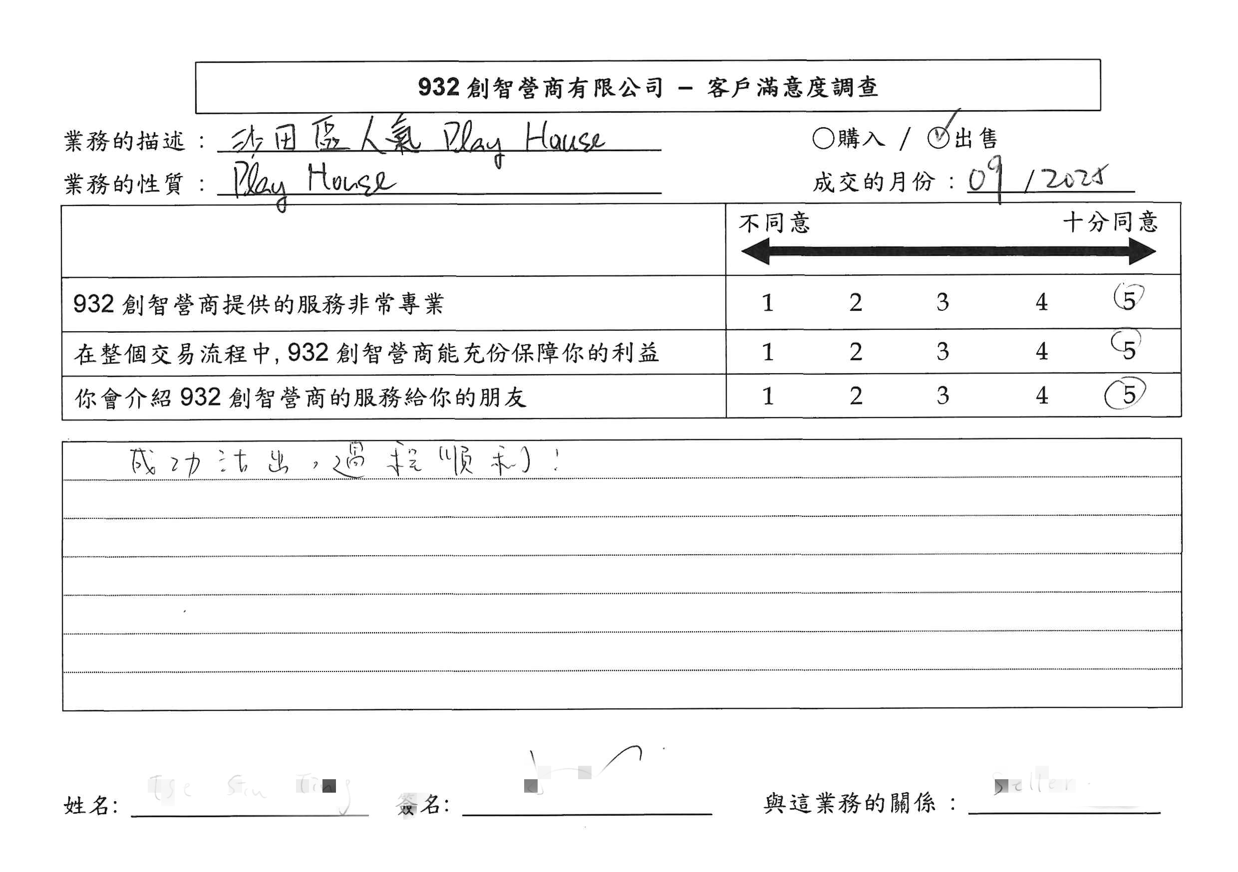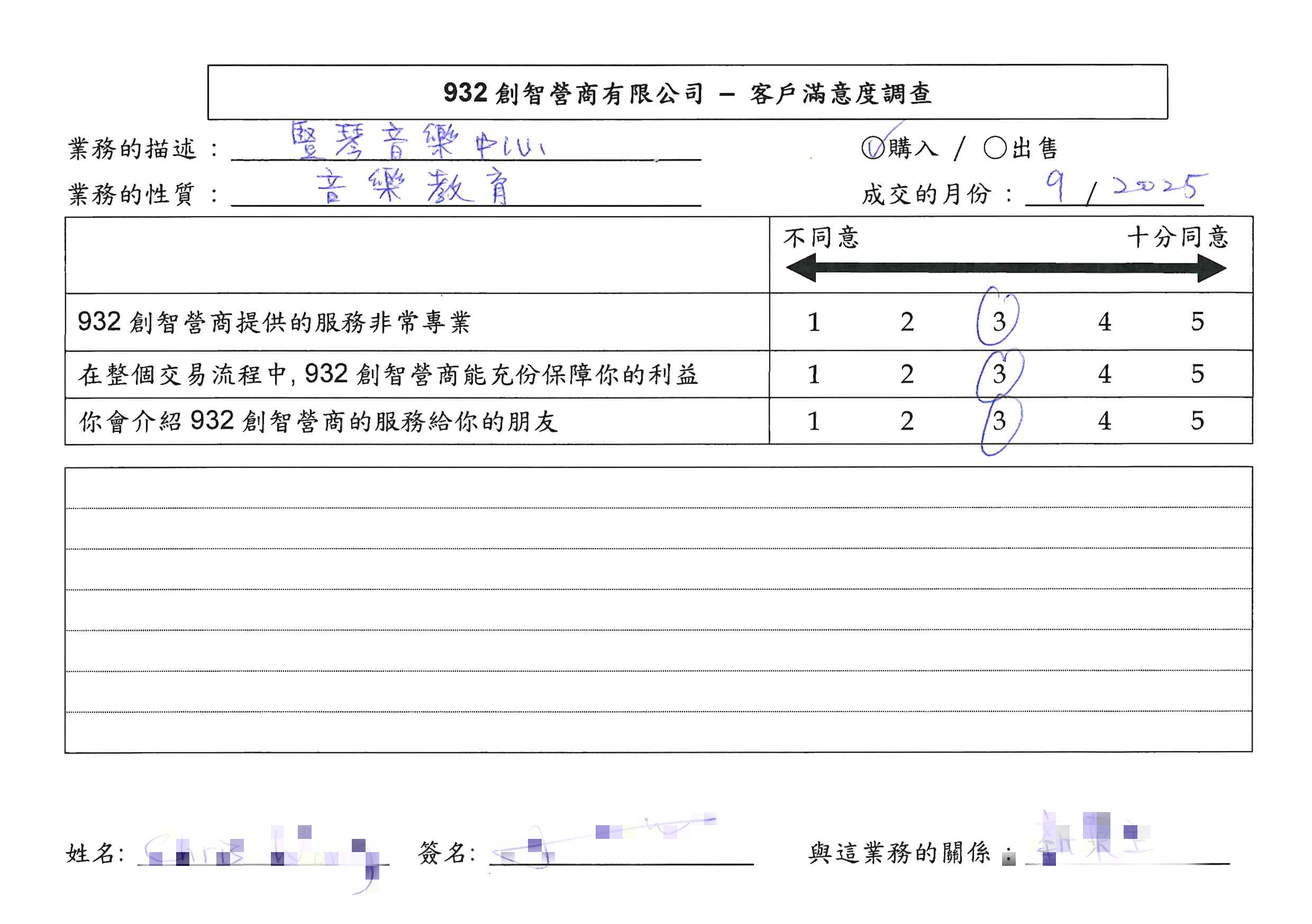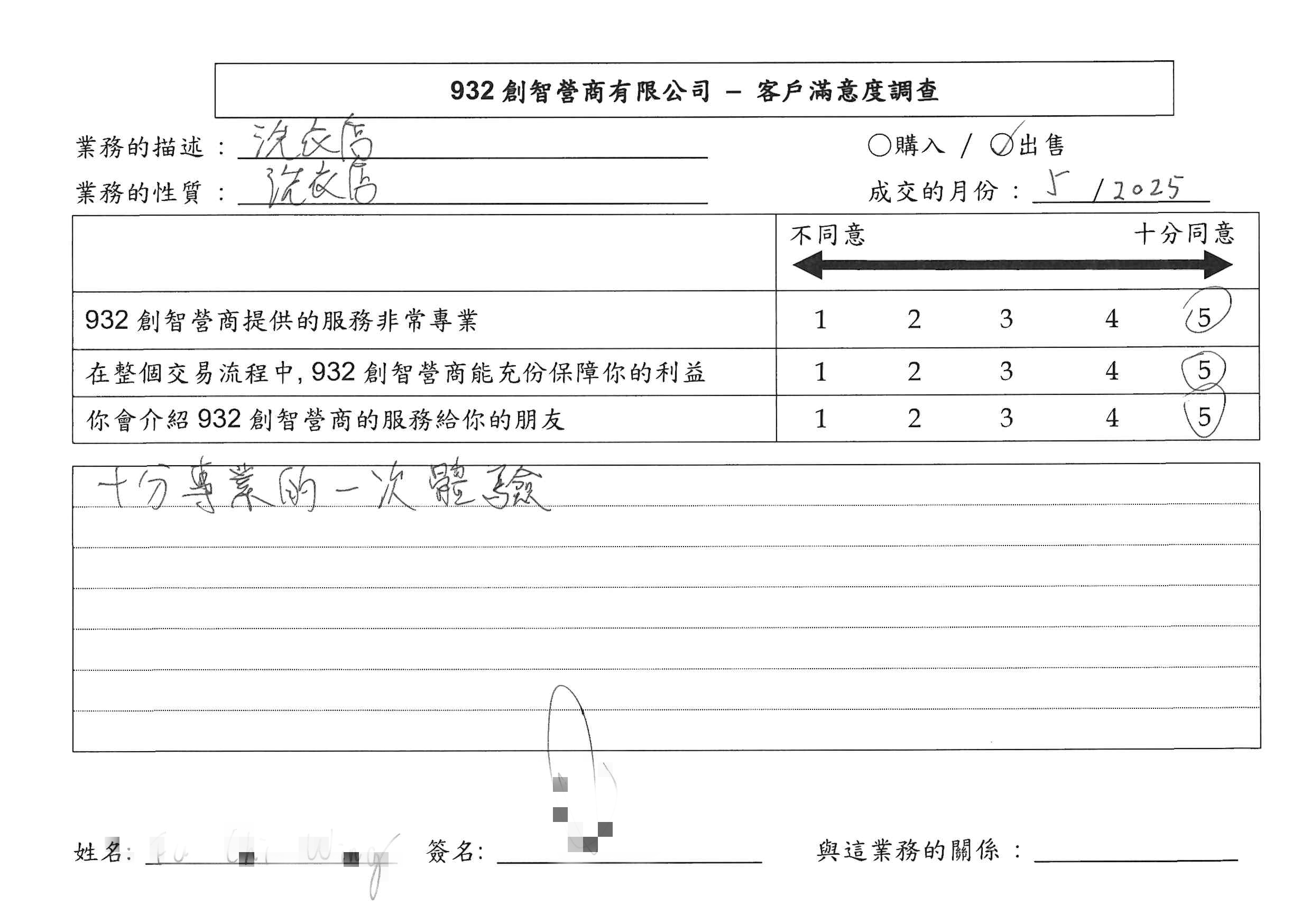 在買賣的過程中,何先生和施先生非常專業解答促成買賣,非常滿意932的服務,希望你們繼續提供優質服務